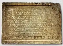 Wikimedia Commons alberga una categoría multimedia sobre Inscripciones de antigua Grecia.