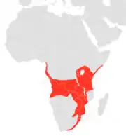 Se encuentra en Angola, Botsuana, Burundi, Camerún, República del Congo, República Democrática del Congo, Guinea Ecuatorial, Gabón, Kenia, Malaui, Mozambique, Ruanda, Somalia, Sudáfrica, Suazilandia, Tanzania, Uganda, Zambia y Zimbabue.