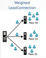 - Weighted LeastConnection: Las peticiones se entregan dependiendo del peso y el número de conexiones que se tengan