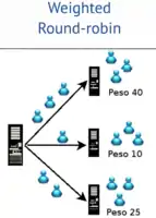 - Weighted Round-Robin: Las peticiones se entregan dependiendo del peso que se le de a cada servidor.