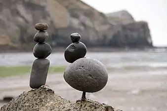 El equilibrio de rocas también se ha descrito como un tipo de resolución de problemas, y algunos artistas lo consideran una habilidad de la conciencia. Algunos trabajos han sido descritos como trucos de magia para la mente.[3] Al igual que con otras formas de arte público independiente, algunas instalaciones pueden crearse en áreas remotas donde puede haber poca o ninguna audiencia.[4] Un cairn, que se utiliza para marcar senderos, también es una colección de rocas apiladas, pero estas suelen ser más duraderas.[cita requerida]
