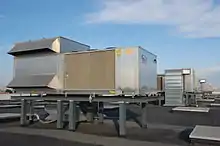 Otro elemento fundamental en estos aparatos es el dispositivo de disipación de calor al exterior, que puede ir desde un simple intercambiador con un ventilador, hasta una torre de enfriamiento.