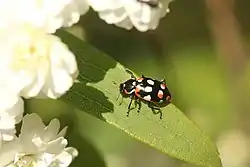 - Eriopis connexa a la derecha junto con una vaquita de la especie Harmonia axyridis