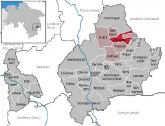 Se encuentra ubicado al sureste del estado, a poca distancia de la frontera con el estado de Sajonia-Anhalt.