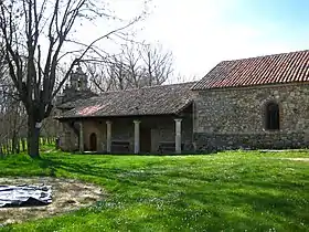 En la puerta principal de la ermita, podemos observar en su ángulo superior derecho un bajorrelieve, vestigio de lo que fue la antigua construcción. Se trata de la representación de una figura femenina de formas toscas que porta sendos objetos en sus manos. El valor simbólico de esta talla primitiva se desconoce, aunque se apunta a una alegoría de la eucaristía.