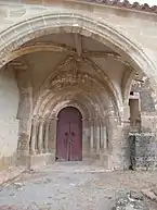La iglesia, consagrada a la Virgen, es una construcción tardorrománica de sillares. Tiene una portada románica con arquivoltas y un porchegótico cubierto con bóveda de grandes ventanales. Las capillas laterales de la iglesia también son añadidos de épocas posteriores. El ábside está en el interior del semicírculo con forma poligonal. Son muy numerosas las ménsulas soportadas en estatuas esculpidas. En la fachada oeste se encuentra un pórtico gótico y una espadaña. En la iglesia se encontraron restos medievales de murales con la imagen de los apóstoles.