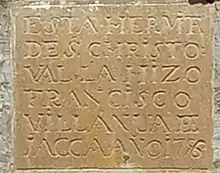 ESTA HERM/I/T/A DE S. CHRISTOVAL LA HIZO FRANCISCO VILLANUA DE JACCA AÑO 1756