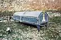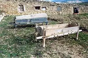 - Detalle de antiguo «cajón de muertos» en el cementerio parroquial de Sesga, Ademuz (Valencia).