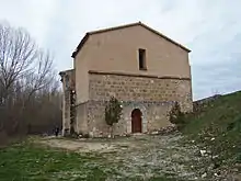 El ábside y tramo recto de esta ermita fueron construidos en estilo románico arcaizante a finales del siglo XIII y comienzos del XIV. Las obras debieron detenerse en ese punto, añadiendo tan solo parte de lo que habría sido el muro sur, de una altura de 1m. Estos cimientos salieron a la luz en la restauración de 1991 cuando en el transcurso de las obras se descubrió que estaba enterrado por debajo de la carretera trazada en los años 70 del siglo XX. También durante esos trabajos se pudo constatar el arranque del muro norte sin más continuación. Todo esto hizo suponer que la obra románica se había detenido utilizando solo el ábside, sin que ningún documento por el momento haya salido a la luz con alguna explicación de los hechos.