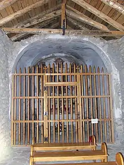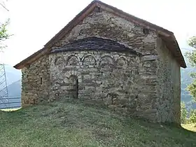 El aparato es rústico, pero las hileras tienden a la regularidad. Se trata de una obra de finales del siglo XI al XII, agrandada por el lado de la nave en épocas posteriores.