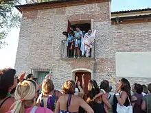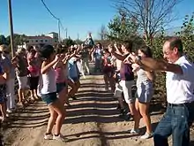A la entrada de la Virgen en la ermita, los quintos realizan una torre (se suben unos a los hombros de otros) y echan a la corona de la Virgen los pañuelos que anteriormente cogieron. Una vez cantada la salve a la Virgen, los quintos devuelven los pañuelos a las mozas lanzándolos desde el balcón de la casa del ermitaño.