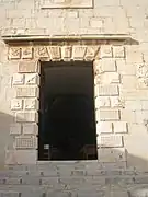 Como curiosidad, y contra la costumbre de ornamentar con motivos religiosos, en esta fachada se encuentran grabados en la piedra a los lados de la puerta principal motivos militares como cañones, tambores de guerra, entre otros.