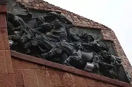 - Monumento a los Héroes de la Independencia (1927-1951). Humahuaca, Jujuy. Imagen frontal del indio y los bajorrelieves.