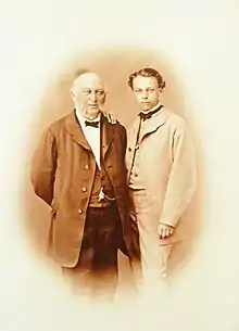 ![]() Büchner (derecha) con su padre Wilhelm ( de) , ca. 1865 en Pfungstadt | ||