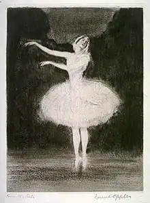 Desde 1909/1910 dibujó y grabó muchas representaciones de los ballets rusos. Oppler registró sus impresiones de las representaciones de danza directamente mientras asistía a las representaciones en el teatro, para lo cual inventó un lápiz iluminado especial que le permitió esbozar sus impresiones del movimiento en el auditorio a oscuras. En el campo de la representación de escenas de ballet, se convirtió en el cronista alemán más importante de la danza artística. Más tarde reconstruyó y corroboró sus impresiones momentáneas esbozadas de figuras en movimiento en dibujos, grabados, litografías, acuarelas y pinturas. Los valores tonales pictóricos de sus aguafuertes fueron muy expresivos. Esta técnica le permitió una amplia gama de valores claros/oscuros. Ernst Oppler siguió siendo un observador apasionado y cultivó la estética del ballet a lo largo de su vida, lo que le valió el sobrenombre de pintor de danza. A diferencia de Edgar Degas, quien había representado bailarinas en el descanso, durante el entrenamiento, atándose las zapatillas de ballet y haciendo reverencias y era considerado un pintor de ballet, pero en realidad solo registró un género, Oppler se centró en el movimiento de danza en sí, el trabajo de ballet y los artistas individuales, en su mayoría destacados en primer plano (Anna Pavlova, Tamara Karsavina, Vaslav Nijinsky y otros). Oppler pronto fue invitado explícitamente a dibujar durante los ensayos y actuaciones, razón por la cual, por ejemplo, los ensayos con Richard Strauss en París están documentados con dibujos y grabados. [24]