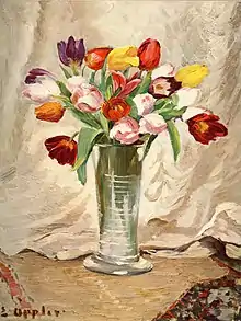 El número de obras de Oppler solo se puede estimar, aunque "100 pinturas originales, complementadas con dibujos y grabados" se mostraron en una exposición en la Galería de arte de Leipzig PH Beyer & Sohn. [35] La disertación de Jochen Bruns sobre Ernst Oppler, publicada en 1993 y complementada en 1997, describe 271 pinturas y 531 grabados.
