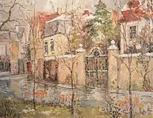 - House and gardens (View of a house through a wooded garden), Öl auf Leinwand H 40,5 × B 30,5 cm