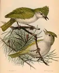 Erpornis zantholeuca tyrannulus, ilustración de Keulemans, 1870.