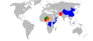 En 2011, hubo 11 brotes de polio salvaje, nueve nuevos y dos que continuaron desde 2010.[85] Costa de Marfil reportó 36 casos de polio tipo 3 como parte de un brote presente, al igual que Malí y Guinea.[88] La transmisión del polio se reinició en Angola, Chad y la República Democrática del Congo.[89] Kenia registró su primer caso desde 2009,[90] mientras que China reportó 21 casos, la mayoría en Sinkiang, sus primeros desde 1994.[91] En 2007, Pakistán registró 32 casos de polio, su número más bajo. No obstante, en 2011, la cifra aumentó a 198 casos.[82] Los focos de infección se extendían en tres regiones de Pakistán: Baluchistán, Sind y las Áreas tribales.[92] La problemática en Pakistán surgía por la desconfianza en los trabajadores sanitarios que participaban en la vacunación de los menores, en gran medida, provocada por la falsa campaña de vacunación realizada por la Agencia Central de Inteligencia como excusa para obtener muestras de ADN de parientes de Osama Bin Laden.[93][94]