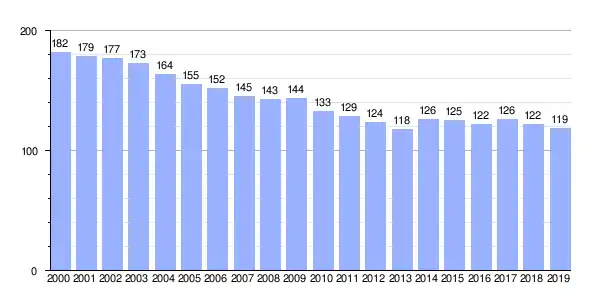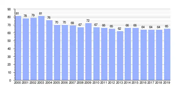 Gráfica de evolución demográfica de Erviñou (parroquia) entre 2000 y 2019 |