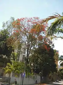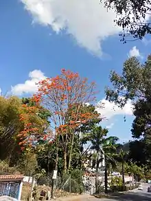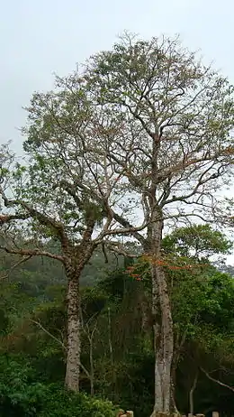 ![]() Dos ejemplares de bucare ceibo en el Parque Nacional del Ávila (Caracas), al final de su época de floración. Imagen enfocada hacia el sur. | ||