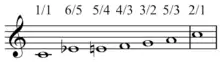 La escala de armónicos es una escala musical basada en las posiciones nodas de los armónicos naturales que existen en una cuerda. Esta escala musical está presente en el guqin, considerado como uno de los primeros instrumentos de cuerda con una escala musical.[1] La mayoría de las posiciones de los trastes que aparecen en los instrumentos de cuerda no occidentales (laúdes) son iguales a las posiciones de esta escala. Inesperadamente, estas posiciones de los trastes son en realidad los matices correspondientes de los armónicos de la serie armónica. La distancia desde la cejuela al traste es un número entero menor que la distancia desde el traste al puente (número superparticular).
