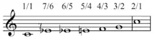 La escala de armónicos fue, junto con el libro de Helmholtz, una inspiración para que Harry Partch cambiara a entonación justa y sistemas de afinación alternativos para crear música más consonante de lo posible con el temperamento igual. La otonalidad de selección de tono de Partch de su concepto de otonalidad y otonalidad son los tonos complementarios de los armónicos. Por ejemplo: la relación de frecuencias de 5:4 es igual a de la longitud de cadena y es el complemento de la posición de la quinta armónica (y el cuarto armónico).