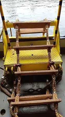 Cuando el práctico debe subir más de 9 metros por la escala, el buque dispondrá de una escala combinada. Es un sistema combinado de escala de gato y escala real o gangway.