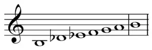 La escala de tonos enteros o escala de tonos completos o, simplemente, escala de tonos, es un tipo de escala hexatónica formada por seis notas, todas a distancia de un tono. Se puede formar de dos maneras, según se observa en las dos imágenes adjuntas, a partir de do o si, aunque cada nota de la escala sirve como generatriz de una escala de tonos enteros, en sus dos variantes si o do.