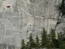 La escalada de grandes paredes es un tipo de escalada en roca en la que se sube un largo camino de varios trechos, por lo que el ascenso normalmente requiere más de un solo día.[1] Las rutas de pared grande requieren el equipo de escalada para vivir en la ruta a menudo utilizando portaledges y transportando equipo.[2] Se practica en paredes con más de 450 metros de alto con caras verticales, con pocas salientes y pequeñas grietas.
