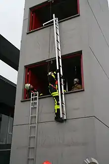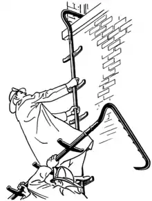 Una escalera de gancho (en inglés: pompier ladder; del francés pompier, que significa bombero ) es un tipo de escalera que se puede fijar en el alféizar de una ventana o una cornisa similar mediante el uso de un gancho que alarga con sierras en la parte inferior. La escalera pegada queda colgada verticalmente sobre la cara del edificio.[1]