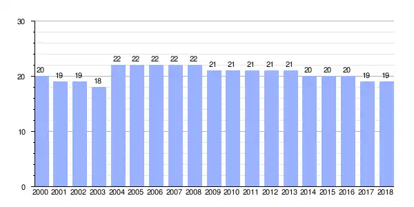 Gráfica de evolución demográfica de Escalleiro entre 2000 y 2018 |