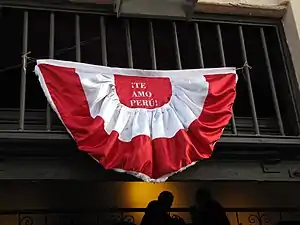 - Esrapela colgada en una casa con la frase “¡TE AMO PERÚ!”.