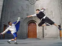 El trabajo que realizan los dobles cinematográficos, dobles de riesgo o dobles de acción es conocido en inglés como stunt, stuntman, stunt double o stunt performer.