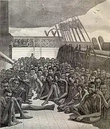 Esto no impedía que los esclavos fuesen transportados en condiciones infrahumanas; el viaje desde África hasta América duraba unos dos meses y se llevaba a cabo en buques plagados de enfermedades, con pobre o ninguna ventilación, yOrígenes étnicos