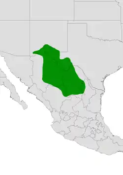 Se distribuye en Chihuahua, Coahuila, Durango, Nuevo León y Zacatecas en México y en Arizona, Nuevo México y Texas en Estados Unidos. Habita sobre pendientes rocosas y sobre suelos calizos o de origen volcánico en matorrales xerófilos y pastizales.[1]