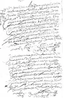 Por último, la escritura procesal no era sino la corrupción o degeneración de la cortesana.[1] La figura de las letras de una y otra era esencialmente la misma y sus abreviaturas análogas, pero la procesal se distinguía a primera vista por ser más tendida, más incorrecta, de mayor tamaño y más abundante en enlaces presentando mayor irregularidad en cuanto a la separación de las palabras. Su uso fue general desde el último tercio del siglo xv para los instrumentos públicos y las actuaciones judiciales, de donde le vino el nombre de letra procesal. Esta letra, viciosa ya en su origen, fue desde su principio degenerando y ni se sujetaba a reglas en cuanto a la figura de las letras, ni en cuanto a los enlaces ni en lo relativo a la división de palabras. En los últimos años del siglo xv llegó a hacerse exclusivo su uso en las escribanías y tantos perjuicios acarreó que hubo necesidad de que se dictaran disposiciones legales para evitar sus inconvenientes.