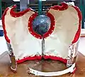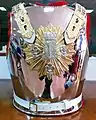El reglamento de 1910 describe así la coraza para el Escuadrón de la Escolta Real: “De hierro bruñido, con peto y espaldar; el primero lleva en su centro un sol dorado, y sobrepuesto la cifra A.XIII, con corona Real y tres flores de lis en metal blanco; hombreras de cuero blanco, sobre las que van unas cadenillas de metal doradas para abrochar en peto con el espaldar, y cinturón del mismo cuero; corbata de paño color grana rizada y sujeta interiormente al forro, que será de badana blanca”. Estas corazas se estrenaron el 12 de abril de 1881, cuando el Escuadrón de Escolta Real en unas maniobras realizadas en la Casa de Campo de Madrid a las órdenes del rey Alfonso XIII.