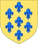 El escudo Niño tiene fondo dorado y siete flores de lis azules dispuestas en tres palos de 2-3-2 flores.[2]