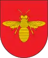 Escudo en losange de ángulos rectos: de sable, una abeja volando de oro. Al timbre, una corona de barón.[1]