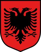 Blasón | Águila bicéfala de sable sobre un campo de gules surmontada por el casco de Skanderbeg de oro. | |