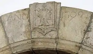 - En la clave del arco de la puerta de la casa Abadía existe un escudo esculpido de 1709, que coincide con la descripción heráldica excepto en que no aparece la hostia.