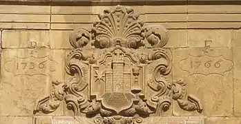 - En la fachada de la iglesia parroquial, encima de la puerta principal, existe un escudo de piedra del siglo XVIII, con todos los elementos del anterior.