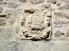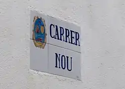 - Placa de una calle donde se puede ver el antiguo escudo.