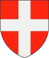 «Escudo embaldosado: de gules, una cruz estrecha de plata. Al timbre, una corona mural de villa.»[1]