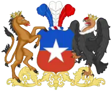 Tenante | Huemul a la izquierda y cóndor a la derecha, coronados con corona naval de oro. | ||||