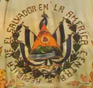 El Salvador, como parte de las Provincias Unidas del Centro de América, adoptó la bandera y el escudo de armas aprobados por la Asamblea Nacional Constituyente de Centroamérica, según Decreto Legislativo No. 29 del 21 de agosto de 1823. La Bandera de las Provincias Unidas del Centro de América constaba de tres franjas horizontales: azules la superior e inferior y blanca la del centro. Este es el citado decreto legislativo: