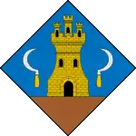 Blasón | De azur, un castillo de oro acostado de dos hoces afrontadas de plata. | |