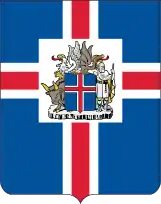 El escudo de Islandia, "Skjaldamerkið", recoge las cuatro figuras míticas protectoras del país ("landvættir") situadas sobre un bloque de lava y sosteniendo el blasón que está compuesto por los mismos elementos de la bandera nacional: En un campo de azur, una cruz (escandinava) de gules bordeada de plata.