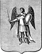 Blasón | En campo de azur el Arcángel San Miguel, puesto de frente y vestido de plata con armadura de lo mismo y manto de púrpura, armado de una espada de oro y portando un escudo de plata cargado de una cruz de oro y bordura de lo mismo. | |
